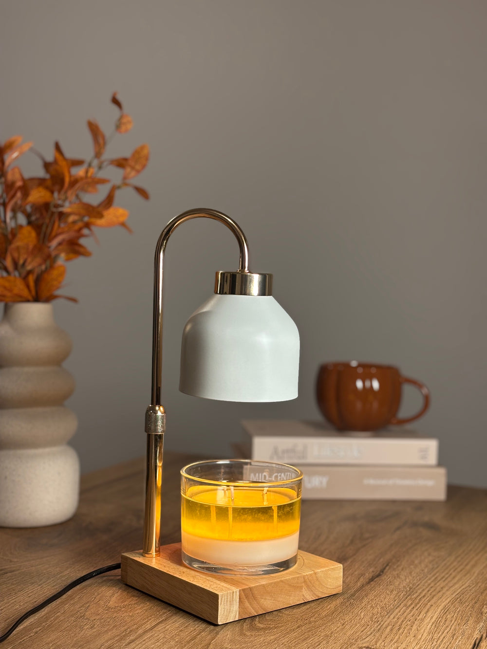 Notre lampe chauffe-bougie utilise une ampoule halogène de 50 Watts, avec plusieurs niveaux d’intensité réglables.